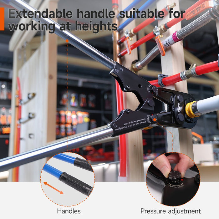 IWS-1632BF PAP/PEX-Mehrschichtrohr-Presswerkzeug mit ausziehbarem Griff (16,20,26,32 mm)