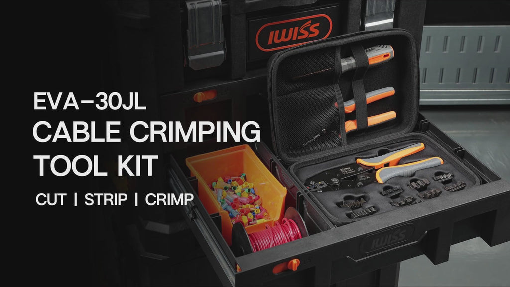- The EVA-30JL is an 8-piece wire crimping tool kit that comes in a compact carrying case that allows you to make a variety of electrical wiring connections using heat shrink terminals, end sleeves, insulated and non-insulated terminals, open barrel connectors. Cut, strip and crimp wires in one kit.